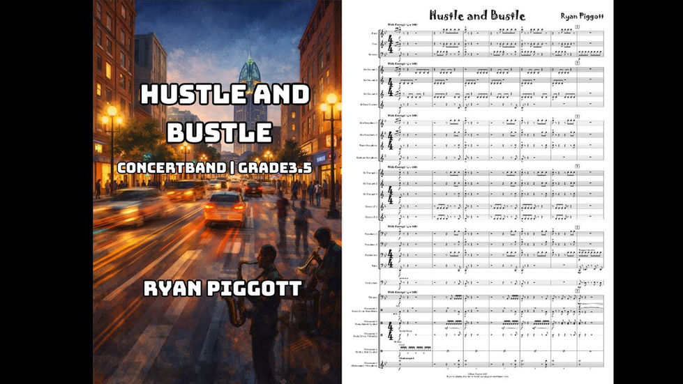 This jazz-inspired concert overture (ABA′ + Coda) is a tribute to the busy downtown atmosphere of my hometown, Mobile, Alabama. Though often overshadowed by nearby New Orleans, Mobile is a city rich in American and musical history. The A sections are fast and lively, drawing inspiration from the constant motion of street performers and honking cars that define the city’s soundscape. In contrast, the slower B section features an extended bassoon solo, evoking a moment of calm—like sitting in Cathedral Square Park beneath the massive old oak trees that shade the space. The final section serves as a fanfare to the future. Percussion and woodwinds grow increasingly hectic, creating an almost chaotic groove beneath triumphant high brass that restates an altered version of the bassoon’s earlier melody.